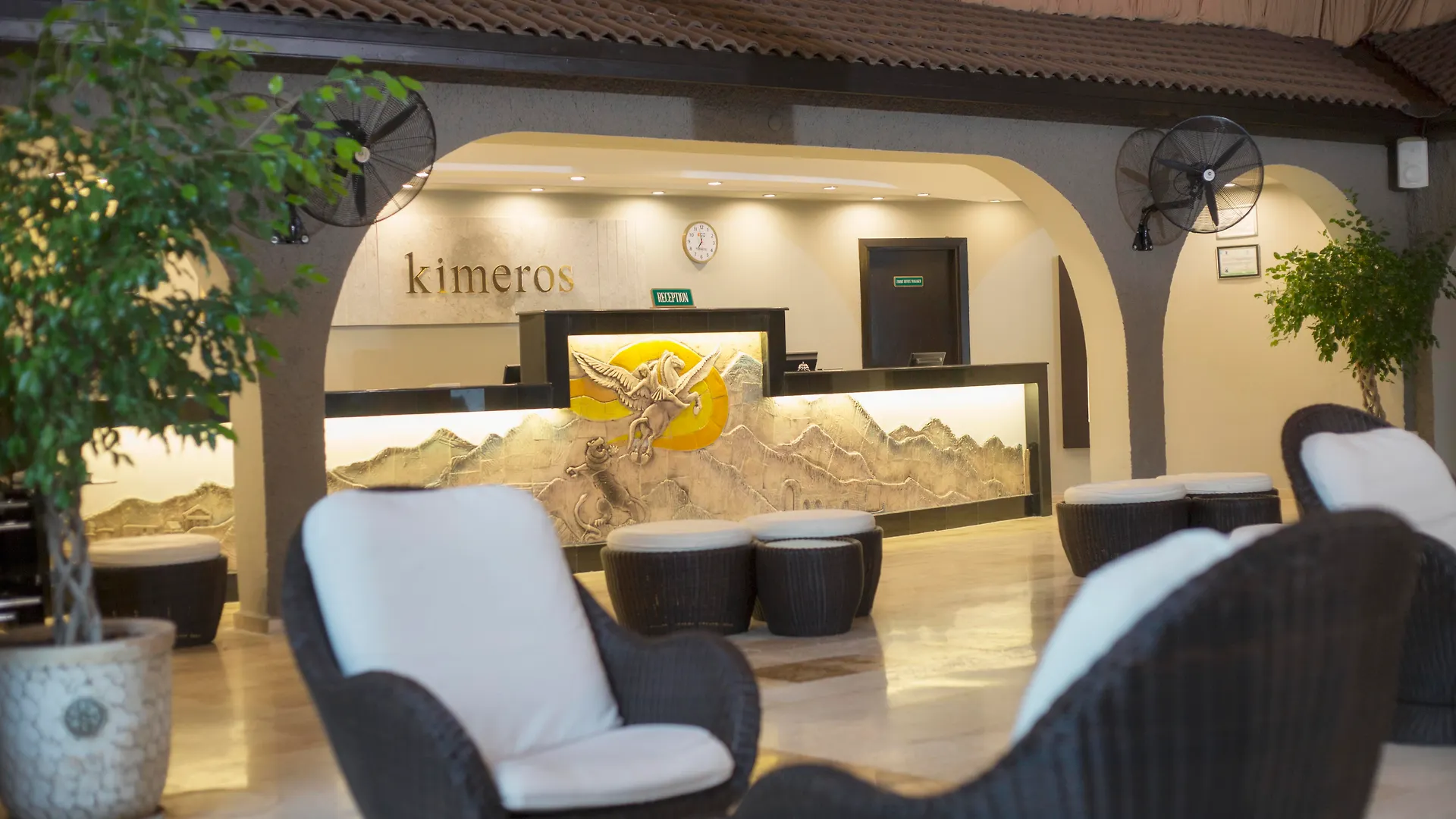 - Kimeros Family (33 m²): Larger suite with a double and two single beds in separate rooms.